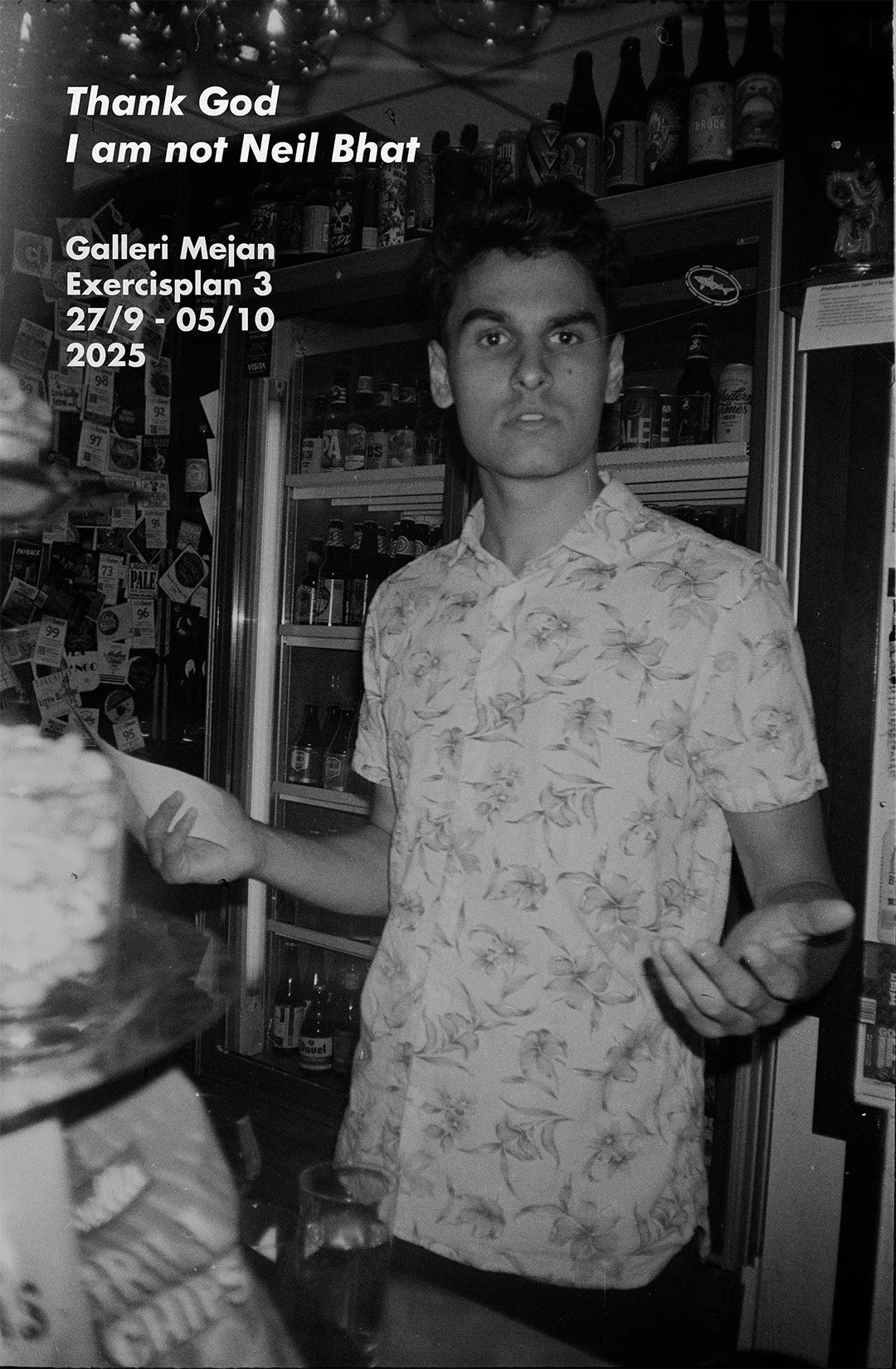 On September twenty-sixth, 2025, my solo presentation Thank God I am not Neil Bhat for the MFA program at the Royal Institute of Art opened at Galleri Mejan.